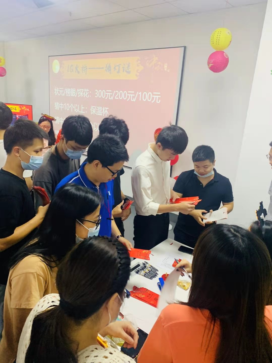 猜燈迷兌獎中~大家手里都拿著一沓燈謎,向著現金大獎出發!