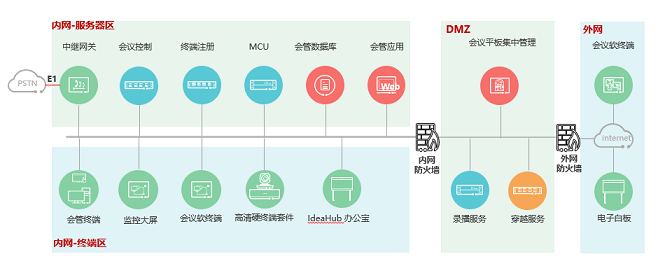 包括視頻會議系統、電話會議系統、電子白板、會議平板終端、電子白板和會議平板集中管理系統、會管系統、統一監控平臺、系統對接定制開發服務等,提供端到端的高清視頻會議解決方案。