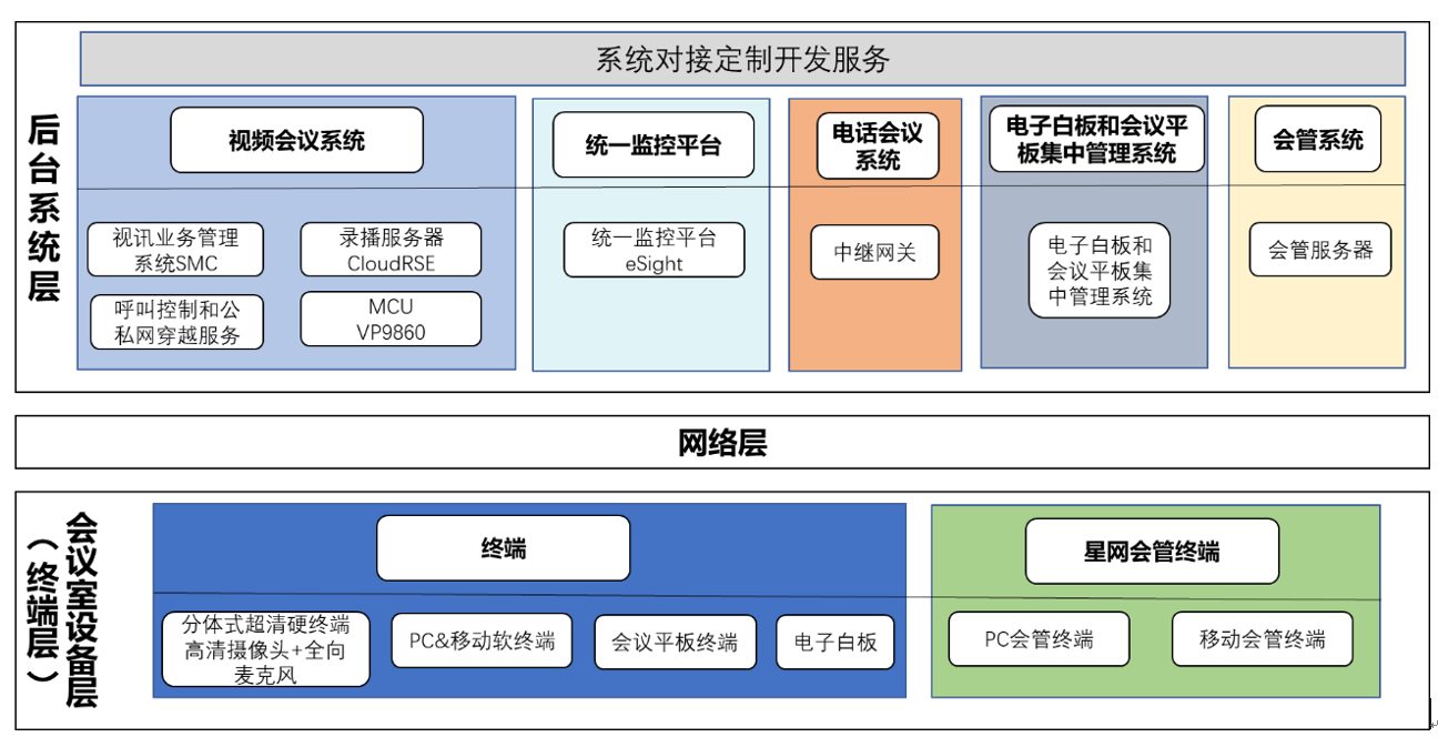 替換原有后臺設備,兼容已有的視頻終端,覆蓋各相關會場,來滿足多種工作的需要。能綜合傳輸處理數據、語音、文字、圖表、動態圖像,具備充分的開放性和技術先進性,在應用中實現交互式視頻會議、自由討論、實時現場圖像、資料的傳輸等功能,用于各會議室之間的日常視頻會議、交流培訓等辦公業務。