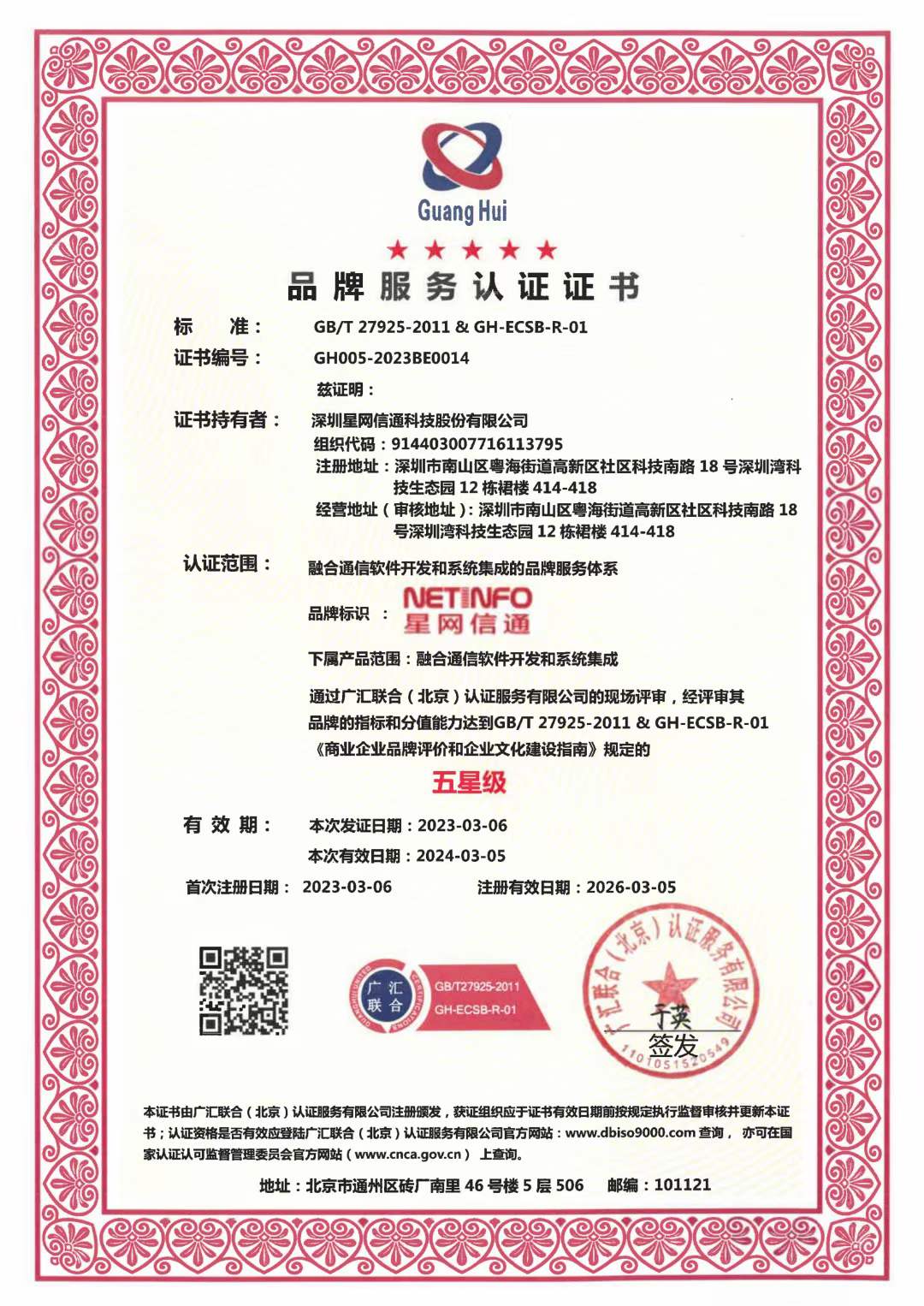 熱烈慶祝星網(wǎng)信通榮獲《五星級(jí)品牌服務(wù)認(rèn)證》