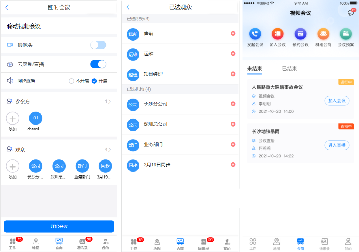 能互動(dòng):觀看會(huì)議直播,系統(tǒng)提供圖文會(huì)話功能,發(fā)送文字、表情、圖片等,默認(rèn)發(fā)送消息全體人員可見,支持選擇指定人員進(jìn)行私密溝通。觀看直播能瀏覽會(huì)議共享文檔資料。